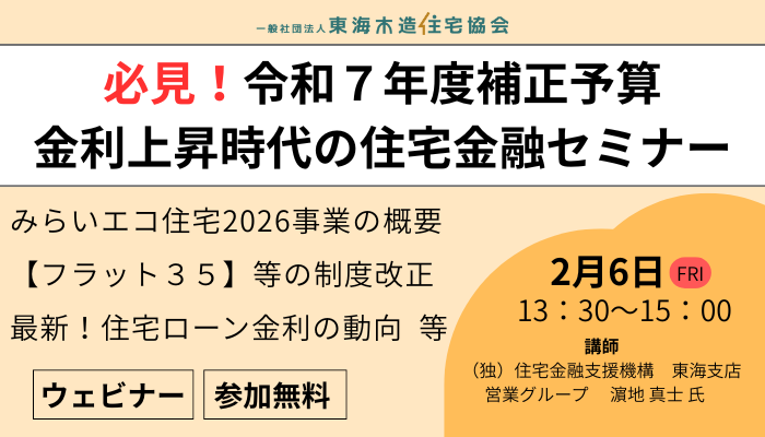 令和7年12月、日本銀行による「政策金利」の追加利上げが決定しました。さらに、令和7年度補正予算が成立したことを受け、住宅関連補助金の創設や【フラット35】等の制度改正が予定されています。金利動向や補助金の活用等、今後の営業活動に役立つ情報を、住宅金融支援機構からわかりやすく説明します。